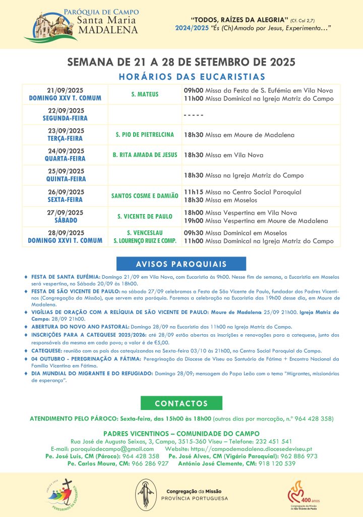 SEMANA DE 21 A 28 DE SETEMBRO DE 2025